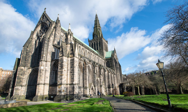 Glasgow CathedralThis fully intact medieval church is Scotland’s one of a kind, dating back to the 1100s. Still a working church where the worship of God has been carried out within the grounds for more than 800 years. The splendid architecture and stained glass offer a unique advantage to filmmakers